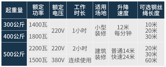 此產品體積小、重量輕、小巧操作方便,采用380V/220V電壓,適用于裝潢、吊運作業、安裝設備、搬家公司、工廠、車間、輕工、重工、維修、倉庫、物流等;